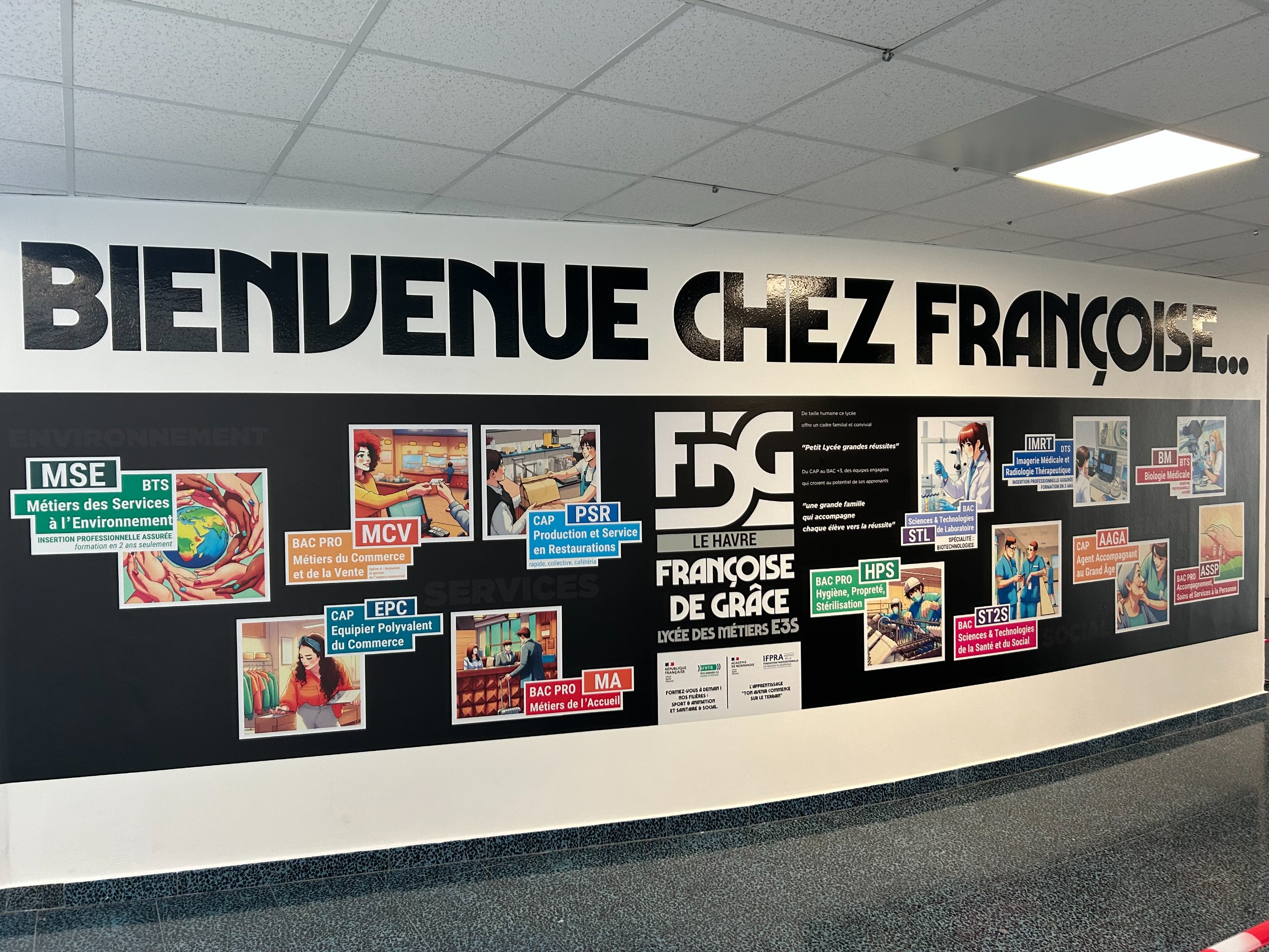 Le Lycée Françoise de Grâce du Havre se dote d’un nouveau mur de présentation au sein de son agora, un espace central de vie et de rencontre pour les apprenants et les équipes.